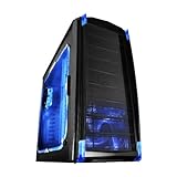 Case Type: ATX Mid Tower; Color: Black; Material: SECC; M/B Type: ATX, Micro ATX.Side Windows: Yes; Top mounted I/O Panel: 2x USB 2.0 Ports; 1x Speaker; 1x Mic; 1x eSATA; Power Supply: None.Drive Bays: 9; External Bay: 3x 5.25"; Internal Bay: 6x 3.5"; Expansion Slots: 7; Cooling System: 2x 120mm top fan; 2x 120mm Blue LED front Intake fan; 1x 120mm Rear Exhaust fan..